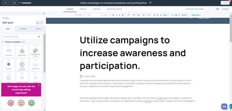 Create and publish engaging, SEO-optimized Blog Content with HubSpot Blog Builder
