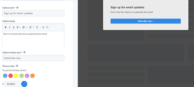 By clicking on the callout tab, you will customize the content, which will help you grab the visitor's attention. Here you get an option to add: