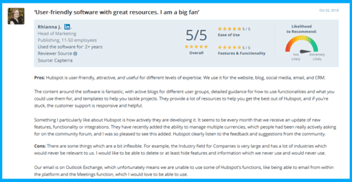 Let’s take a look at some of the HubSpot Marketing Reviews.